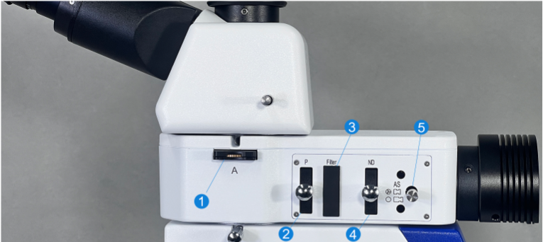 1.檢偏器插板 2.起偏器插板 3.濾色片插板