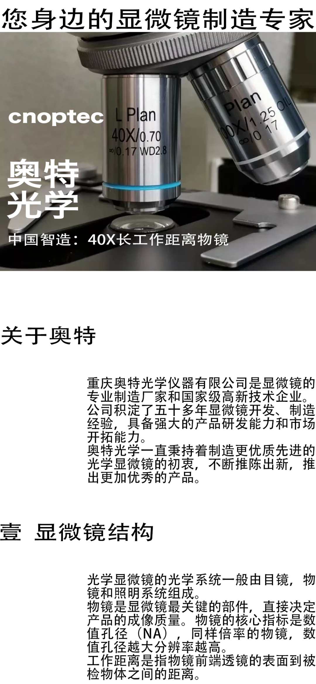 中國智造:生物顯微鏡的40X長工作距離物鏡